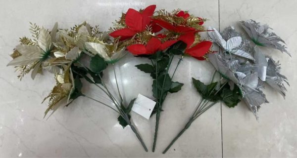 OZDOBA SWIATECZNA13CM 金银红花13CM五朵 9678088