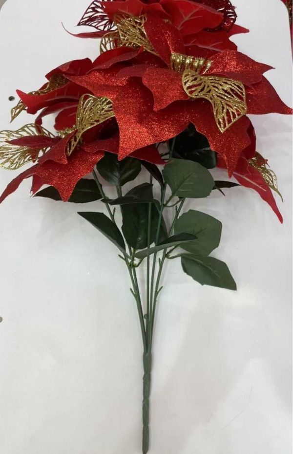 OZDOBA SWIATECZNA24CM 金银红花24CM五朵 9678092